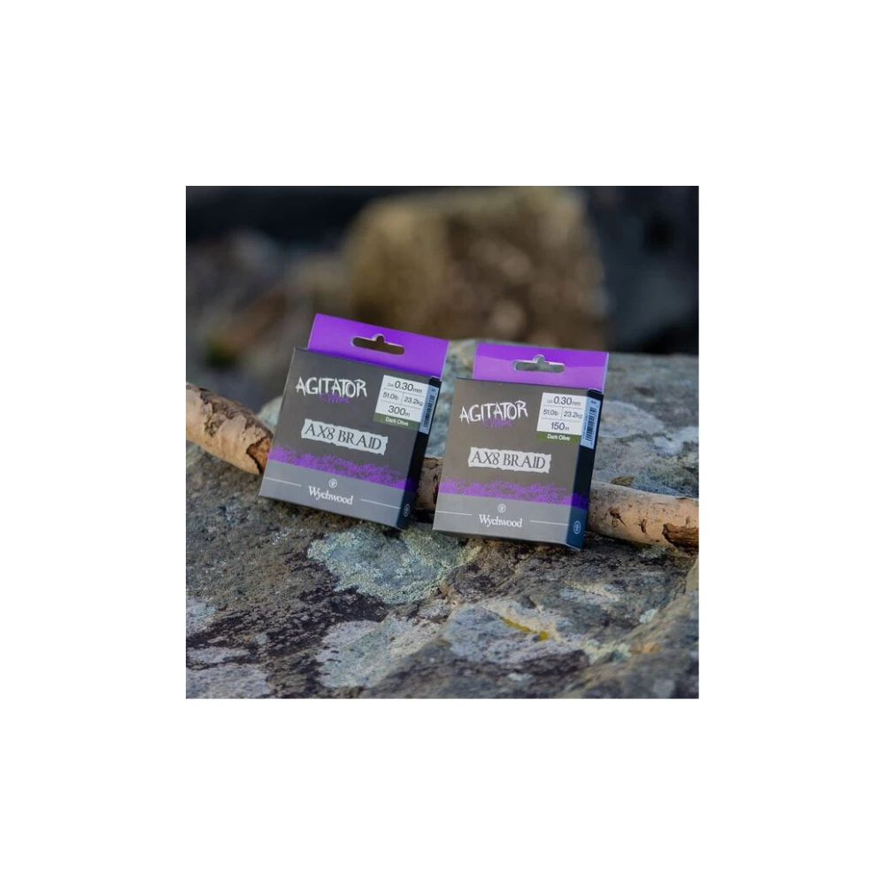 Agitator AX8 is an ultra-high performance coated 8 strand PE braid offering incredible abrasion resistance and unparalleled knot strength. AX8’s unique coating gives a silk like quality, reducing friction for improved casting performance, greater linear strength, and increasing knot strength by as much as 20%, whilst remaining whisper quiet through the rod guides. Its low viz dark mossy green colour and perfectly round profile make it ideal for both the lure and bait angler alike.