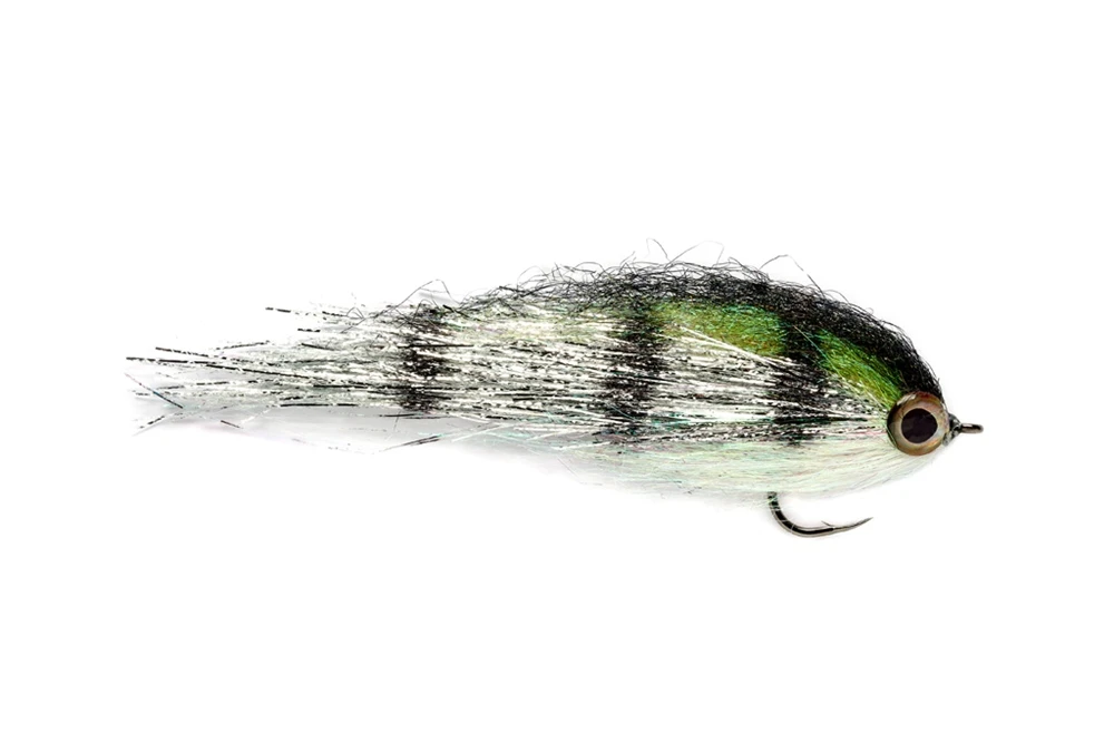 The Clydesdale Silver Perch is a real big fish catcher, it’s tied with highly mobile materials such as tinsel that flutters and undulates with every twitch and pull. These flies draw big pike in that’s for sure. They can be fished with confidence on all waters at any time of the year. The best retrieve with this pattern is a slow figure of eight or roly-poly. If it’s big pike you are looking for these are a must-have. Tied on the reliable Tiemco 600SP hook.