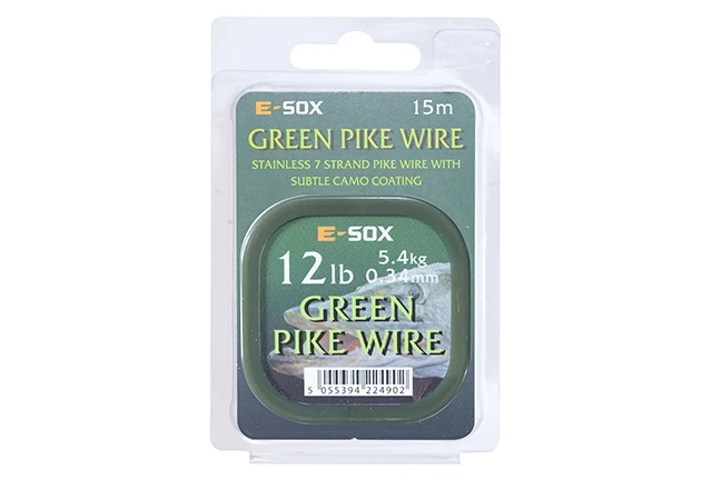 Drennan Green Pike Wire is a top quality stainless steel braid with an ultra thin nylon coating. This makes it extra smooth. improves durability and provides a subtle camouflage finish. Pike rigs can be made up by the traditional twisted wire method and the twist sealed in place by melting and fusing the nylon coating over a low flame alternatively Drennan Slim Crimps one size up from those recommended for Drennan 7 Strand can be used for strongest joints flatten crimp in three central places avoiding either end when using a separate short section of wire on Roder hooks additional strength can be gained by heating the copper barrel after crimping. this will melt and fuse the nylon coating of the wire into a sealed unit. 15m per spool.