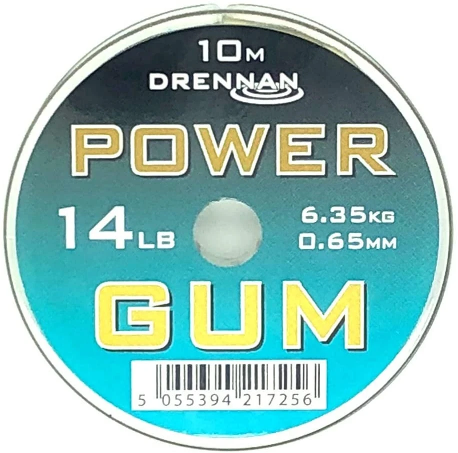 Drennan Power Gum is 0.65mm in diameter and has a host of uses. Good for stop knots or shock absorption on feeder and ledgering rigs. All colours Red. Green and Clear have the breaking strain of 14lbs (6.3kg) and are on 10 meter spools.