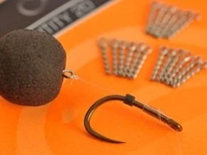 Our Bait Bayonets make changing tough boilie or artificial hook baits quicker than ever. Theyre a simple, twisted metal spike with a ring on the end, which allows it to be tied to a hair rig. To mount a bait, you simply push the bayonet into the boilie, right up to the eye. This will provide a secure attachment, allowing long, forceful casts to be made, safe in the knowledge that the bait will stay on.