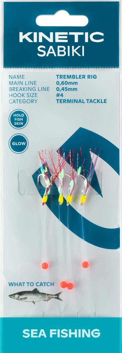 Trembler Sabikis Holographic Fishskin with flash is a perfect rig for those hunting herring, mackerel or small-mouthed fish on shallow water.