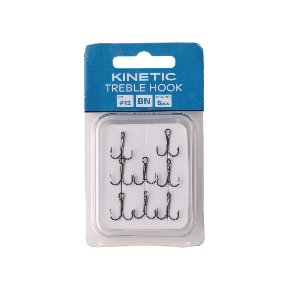 Strong and reliable, the Kinetic Treble Hooks are constructed of strong high-carbon steel for exceptional durability, so you can fish with complete confidence. They have a round, wide-gap bend and ultrasharp points that easily hook fish and won’t let them go.