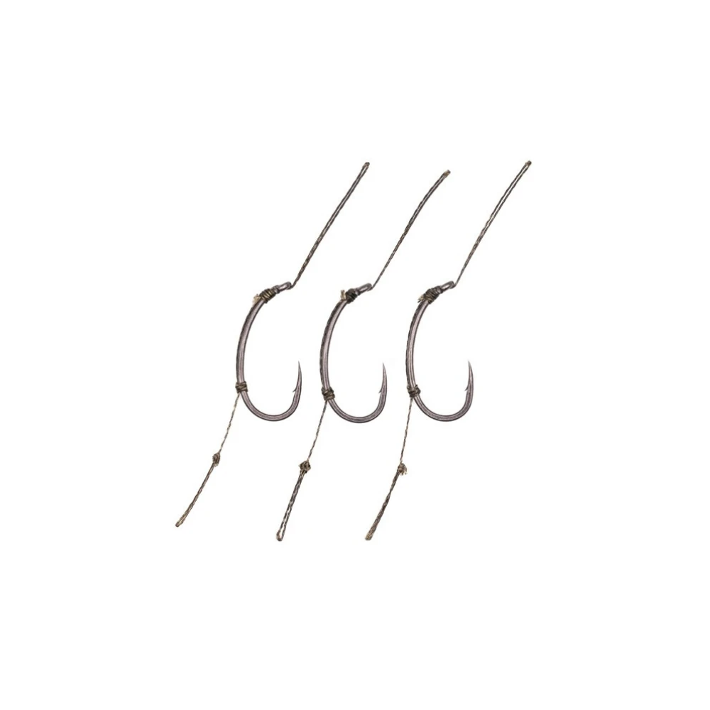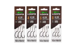 DF’s favourite loop & boom combination featuring the Klor hook. These ready-tied hook link sections are designed to be used in conjunction with our pre-tied booms, or you can tie your own if you prefer. When the two are looped together they form the perfect combi-rig –simply attach the Klor loop section to the Boom’s Loop, loop-to-loop style and you are ready to go, with the added benefit of being able to quickly change the hook section should you need to. The Klor loop section is set up blow-back style but utilising Danny’s favoured lasso knot instead of a rig ring. No need for shrink tube, as the in-turned eye of the Klor helps to ensure that the hook flips over andtakes a hold. They are tied using a semi-stiff braided material, and come in barbed or barbless versions, in sizes 2, 4, 6, or 8. You get three in a packet.