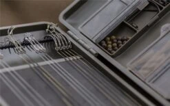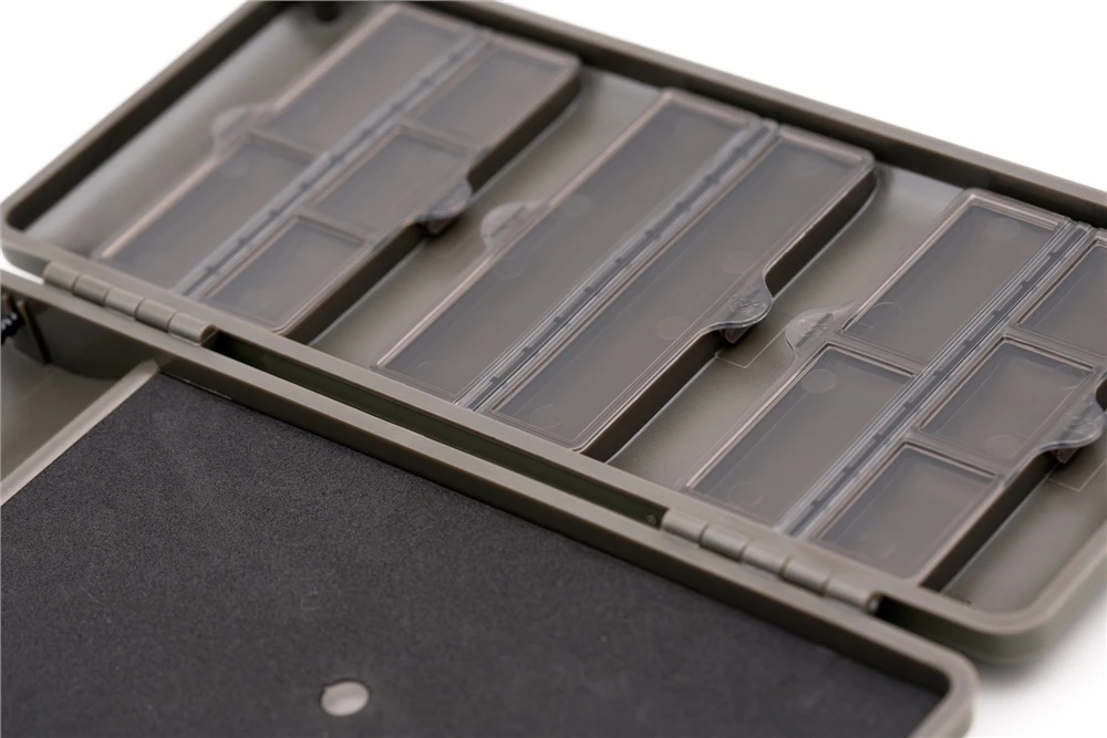 The latest addition to the hugely popular Rig-Safe range is this Mini Combi version, that is ideal for anglers who don?t need as much rig storage space. Unlike the existing Rig-Safe models, this one also provides storage for small essential rig components, such as boilie stops, beads, swivels, shrink tube and anything else of a similar size. These are kept in the 12 secure compartments that fill one side of the case, which snap shut to ensure there is no chance of them spilling out during transit. The other side of the Mini Rig-Safe Combi will hold 20 rigs of up to eight inches in length, which are stored neatly and held in place via the pins provided. It comes supplied with 15 standard pins for storing finished rigs on the high density foam board, plus 10 double pins that will hold rigs in place that are yet to have a swivel or similar attached to them.