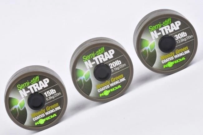 N-Trap Soft Although the original Hybrid hook links had many followers, the Korda product development team thought that it could be bettered. The resulting product, N-Trap Soft, is the culmination of two and a half years of development and testing. So, why is N-Trap the best coated material on the market? Well, it features a tough, matt coating that is easy to strip yet won?t split when tightened down and the rugged Dyneema braid inner is a much better colour match for the coating than other hook links. Following the proven Safezone camou principle, we?ve released the N-Trap in three colours, Weedy Green, Silt and Gravel Brown. Of course, the colours have been chosen with our longstanding underwater experience to closely match the conditions that you?ll find on your waters. N-Trap is hugely versatile, lending itself perfectly to a whole host of presentations. Try it with the KD or Muzza rig, the Multi Rig, or Danny Fairbrass? favourite blow-back rig with a Mixa hook. N-Trap has already found its way into many tackle boxes both here and in Europe, so join the coated-braid revolution and get on it! N-Trap Soft is available in 15lb, 20lb and 30lb versions. Keep your eyes on this site for other N-Trap variants that are well and truly in the pipeline. N-Trap Semi Stiff The second addition to the N-Trap range is slightly stiffer than the N-Trap Soft that has been so popular since its release. The stiffer coating that Semi Stiff boasts is still easily strippable, making it easier than ever to produce top-notch bottom-bait and pop-up presentations. N-Trap Semi Stiff performed extremely well when used on the underwater filming at St Johns. It is available in Weed Green, Silt and Gravel and in 15lb, 20lb and 30lb versions, to cover all UK and Worldwide situations.