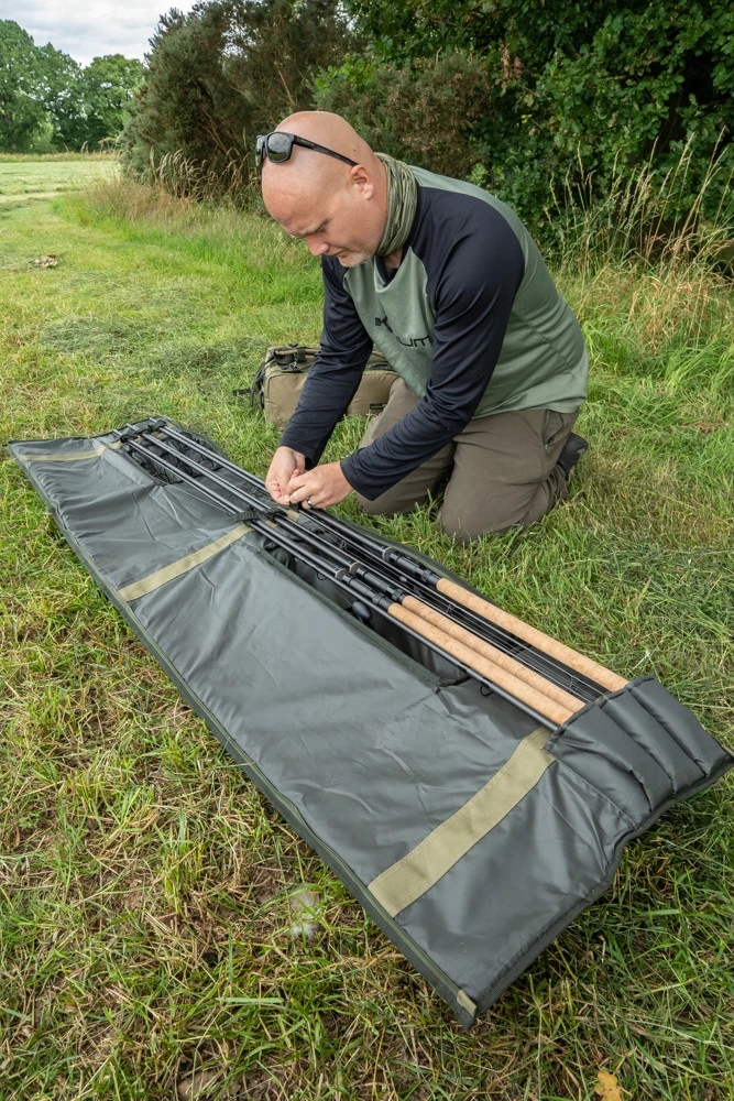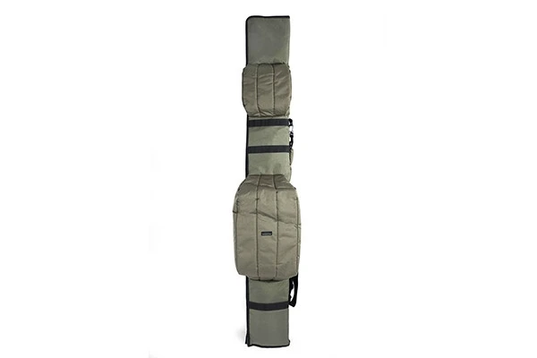 These rod holdalls provide loads of protection for made-up rods and reels. There’s a highly padded area for three setups on the inside, plus a large outer pocket for your landing net and handle. The padded shoulder strap is adjustable, and the carry handle makes life easy on the bank. Increased protection offered for rod guides due to the bumped section at the top of the holdall – a great, simple way to transport your gear.