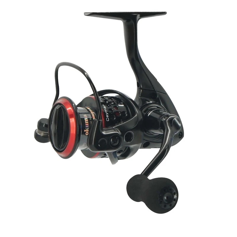 Okuma Ceymar XT spinning reels feature cyclonic flow rotor design Increase air flow through the ported rotor, minimizing water intrusion and corrosion. The precision elliptical gearing system creates less friction during casting for increased distance, greater accuracy, and longer line life, as well as smoother, much uniform drag pressures. The Ceymar XT series includes front drag and rear drag type with extra spool.