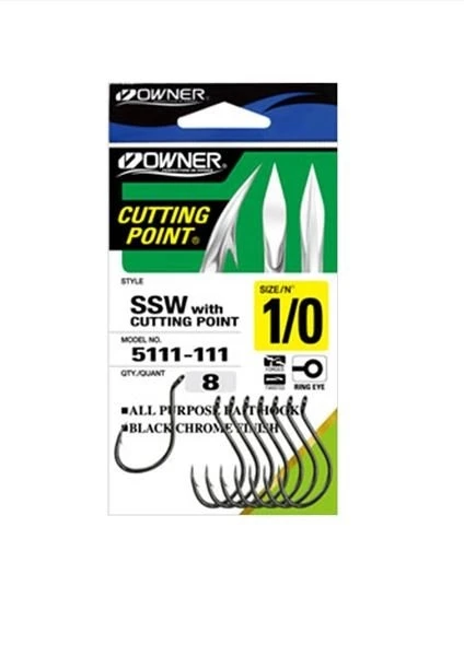 The ideal hook for baiting up whatever the species in freshwater or offshore. Features include Cutting Point, up-eye forged shank and reversed-bend point. Available in black chrome finish.