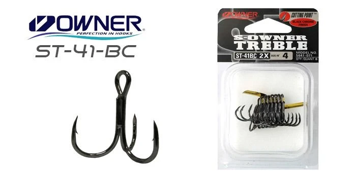 ST-41 Trebles, 2X strong with a corrosion resistant finish, are the ideal replacement hooks for improving the hooking power of heavy freshwater and most varieties of saltwater plugs, spoons and jigs. Features include a shortshank, round bendsand three slightly curved in cutting points.