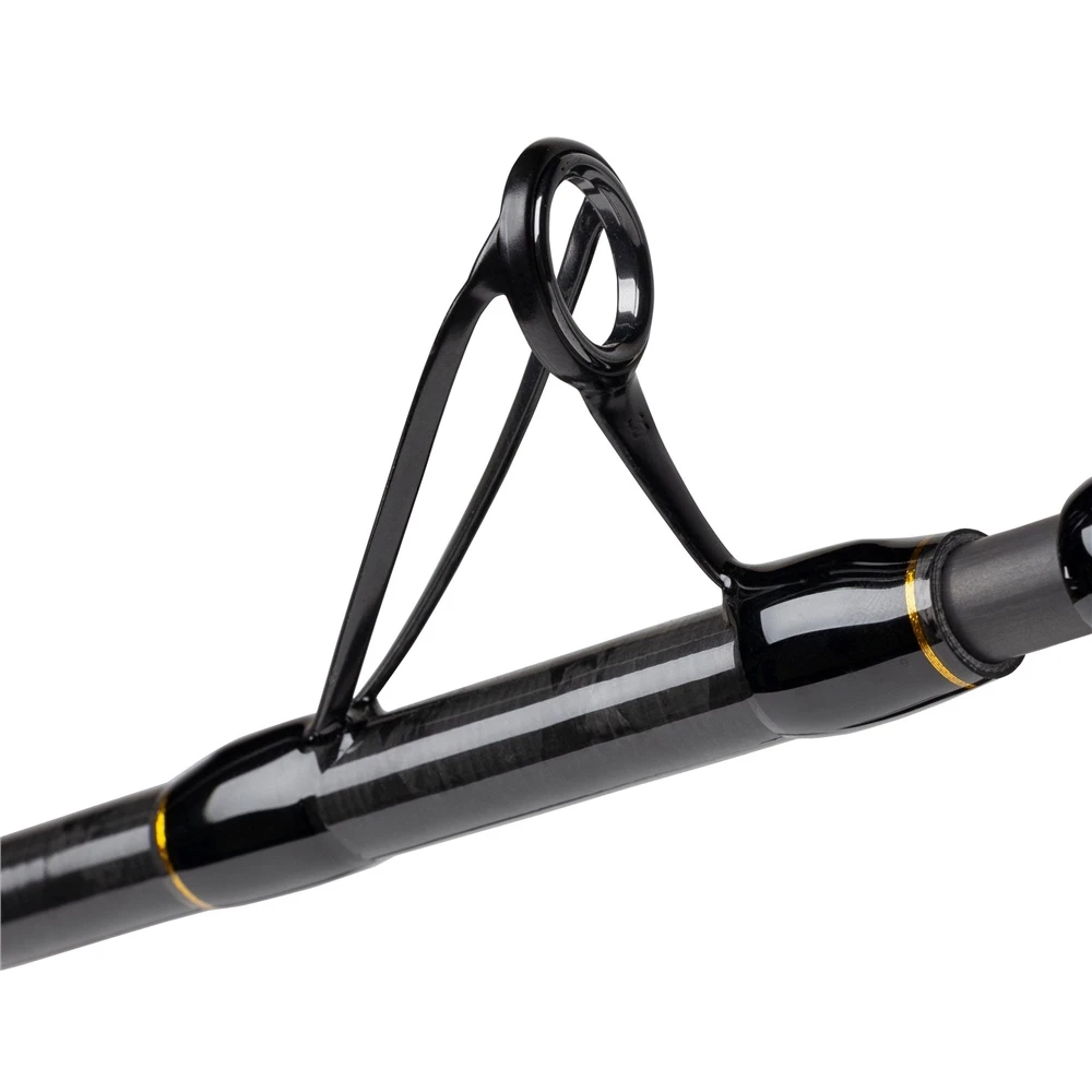The PENN Regiment III Boat Travel 5pcss are especially designed for the travelling angler. Due to the 5pcs construction, these have a short transport length, making them fit inside of your suitcase. Next to that, these are coming in a special hardcase Cordura tube to protect the during transportation. These are constructed from a 30 ton carbon blank in combination with SLS3 technology, resulting in low weight and thin diameter blanks with incredible strength. These are designed to handle both braided and mono lines and are fitted with the best SeaGuide guides. The metal reel with locking nut makes sure that you can fully lock the reel on the, so you don’t have to worry about your reel getting loose during the fight of a big fish. So if you are looking for a perfect and super strong all-round boat with a short transport length – the Regiment III Boat Travels are your way to go!