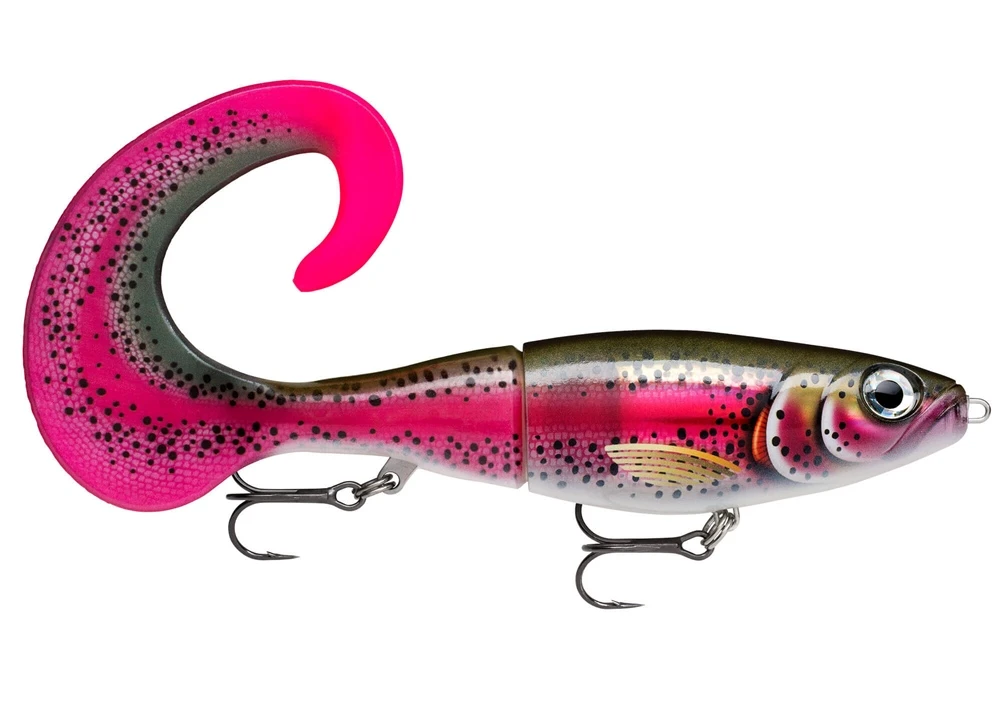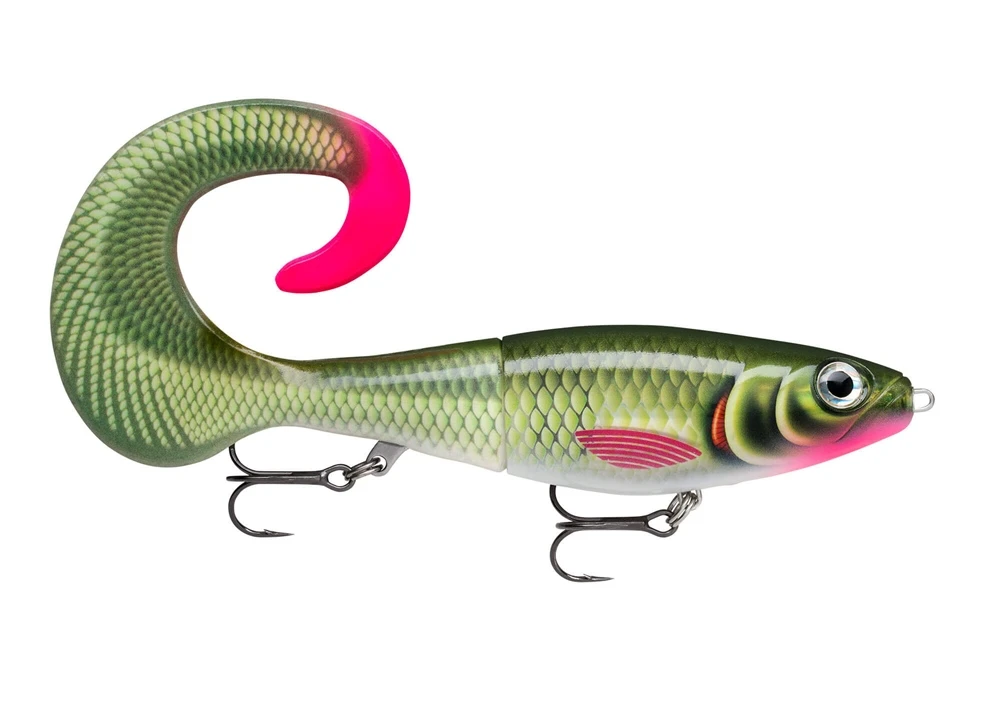 A formidable creature, the X-Rap® Otus, combines Rapala’s fish-catching X-Rap® construction with a beautifully color matched curl tail to create a seamless hybrid bait. With its slow sink rate and wide wafting tail, X-Rap® Otus is the ideal choice for cold water & challenging conditions. The body rolls side-to-side as the enormous curl tail pulses behind when retrieved. When paused, the tail acts as a parachute, stabilizing the lure as it slowly swims into the depths. The soft tail is firmly secured to the body with a 6-point stainless plate. Replacement tail included. Fitted with VMC® Coastal Black hooks.