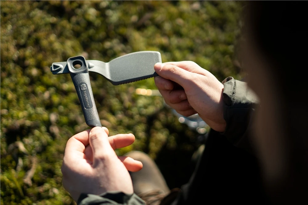 The RidgeMonkey Q-Lock Utensil Set is rigid, hard-wearing and consists of a forked spatula, serrated edged spatula, spoon and a slotted spoon. Featuring our unique Q-Lock folding handle system and a useful hanging hook for storing or drying. The utensils also come supplied in a neoprene pouch for easy storage.Â