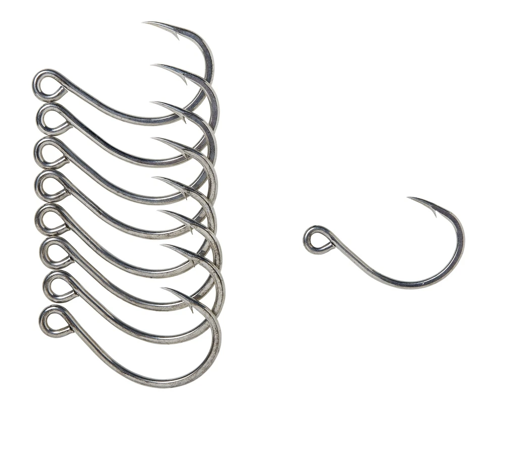 Carbon steel in-line hooks for lures, perfect for belly and tail hooks on hard lures and metal lures.