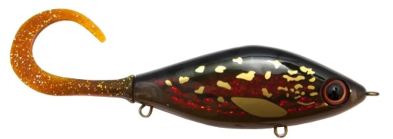 The Guppie Jr this amazing Glide Bait is now available in the UK 11cm long with changeable tail weighing in at 65.5g. Pike heaven!!