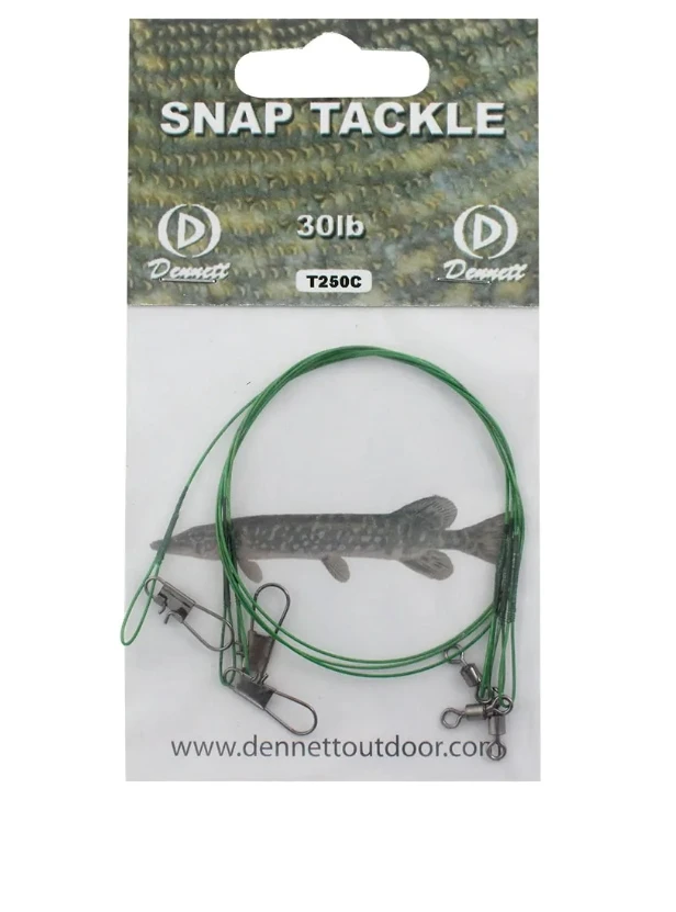 Dennett spinning traces are 12″ long with high quality american snaps and swivels comes in packs of three.